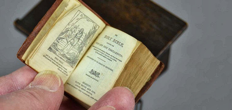 Skócia fontos világközpont a miniatűr könyvek nyomtatásában, az 1870-es évektől kezdődőn egészen az I. világháborúig a glasgow-i David Bryce and Son volt a világ egyik legsikeresebb miniatűrkönyv-kiadója. A cégalapító David Bryce miniatűr Bibliákat és egyéb mikrokönyveket gyártott a századfordulón. A mostani kiállítás egy része Bryce alkotásaiból került ki, megtekinthető többek között a Korán néhány miniváltozata, az első világháború szövetségeseinek himnuszaiból összeállított antológia és egy olyan miniatűr Biblia is, amelyet VII. Eduárd brit király koronázására készült. A kis könyvek általában egy medalionnal együtt vannak, tehát nyakékként is lehet őket viselni, és némelyikükhöz nagyítót is fűzött Bryce.